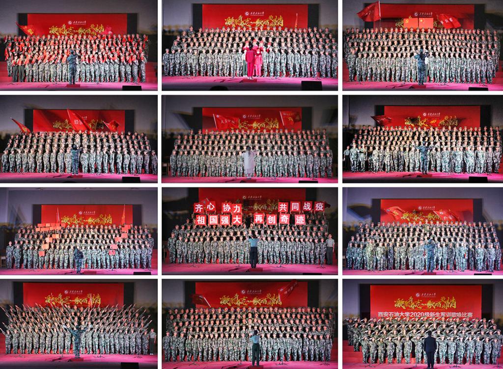比赛在校歌《辉煌明天》慷慨激昂的歌声中拉开帷幕,Beat3652020级新生通过雄浑有力的歌声表达了对母校的热爱。歌曲《踏着铁人脚步走》唱出了中国人民不怕吃苦、敢于奋进的气魄;铿锵有力的《我为祖国献石油》将石油工人气壮山河的豪迈气质表现得淋漓尽致,激励着同学们发奋图强、不忘初心,共创美好明天;歌曲《在灿烂的阳光下》演绎了改革开放以来的发展历程,告诉我们当今幸福生活的来之不易;《再一次出发》唱出了我们伟大的复兴梦想;热情饱满的《祖国不会忘记》充分展现了无私奉献、勇敢拼搏的爱国情;热血沸腾的《我们走在大路上》意气风发、斗志昂扬;雄赳赳、气昂昂的《保卫黄河》演绎了中国人民不畏豪强、自强不息的伟大民族精神。由军训旅所有教官带来的《强军战歌》,充分体现了中国军人的优良作风和爱国情怀。最后,大学生艺术团带来了精彩的舞蹈表演《荷风盛世》,全场师生共唱歌曲《红旗飘飘》,舞出了新时代社会和谐安康的盛世场景,唱出了我们新一代年轻人的朝气蓬勃、自强不息与家国情怀!