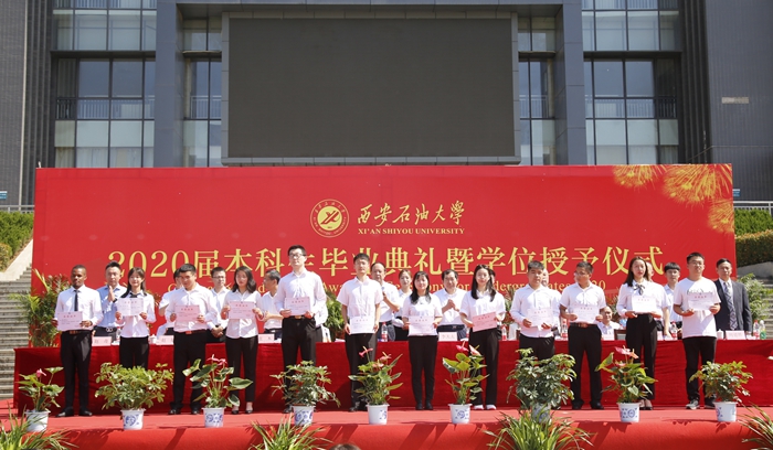 校长李天太为2020届毕业生致辞。他代表学校全体教职员工,向顺利完成学业的包括来自哈萨克斯坦、土库曼斯坦等国家的38名来华留学生在内的4045名本科毕业生表示热烈祝贺,向辛勤养育同学们的父母、悉心指导同学们的老师、默默支持同学们的亲朋好友表示衷心感谢。随后,李校长回顾了2020届本科生度过的大学岁月以及取得的累累硕果,并且为抗击疫情期间参与各种志愿服务的同学们“点赞”。