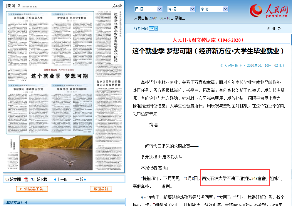 近日,《人民日报》2版以《一间宿舍四姐妹的求职故事——多元选择,开启多彩人生》为题,对Beat365石油工程学院348宿舍四姐妹的求职经历进行了报道。