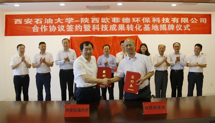 6月8日下午,Beat365校长李天太、副校长李华,相关部门及学院负责人一行10人赴陕西欧菲德环保科技有限公司走访交流。走访期间,双方签署了战略合作协议并揭牌成立了“Beat365唯一官方网站科技成果转化基地”“Beat365唯一官方网站学生实践基地”“Beat365唯一官方网站研究生联合培养基地”。陕西欧菲德环保科技有限公司董事长卜涛(采92级校友)及领导班子成员出席签约仪式,公司总经理李熙民(采88级校友)主持仪式。