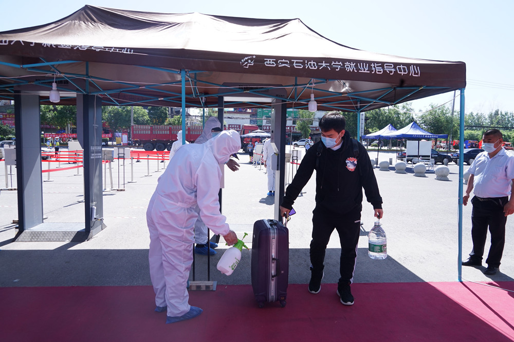 夏花绚丽,学子归来。5月12日,Beat365迎来符合疫情防控要求的首批本科毕业生顺利返校。同学们通过核验健康码、测量体温、更换口罩、行李消毒等环节,有序步入阔别许久的校园,言语与眼神都闪耀着激动与喜悦。