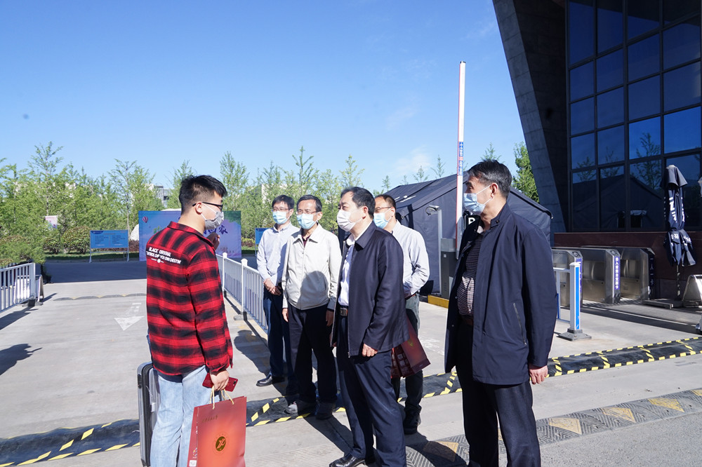 上午8点,校长李天太、校党委副书记张木、副校长苏文甫及相关部门负责人在鄠邑校区东大门迎接返校同学归来。李天太校长为率先返校的9名同学送上健康礼包,详细了解大家的假期生活、线上学习、毕业设计(论文)进展、就业考研等情况,并提醒大家返校后继续注意科学防护、理性应对,以最好的状态迎接校园生活的到来。