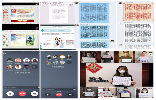 ——强化理想信念教育,筑牢思想行动“总开关”。化学化工学院依托主题班团会、党支部“三会一课”和主题党日活动,及时组织学习习近平总书记系列重要指示及回信精神等,进一步激发师生共同抗击疫情的爱国情怀和责任担当;整理勇于担当、甘于奉献的抗“疫”英雄事迹等,作为专题教育线上教材,先后开展形式多样的线上主题教育4次;学生们积极参与班团讨论,认真撰写心得,及时开展线上分享,“写”出内心自信、坚定和担当,积极传递正能量;辅导员带领学生共同拍摄“为武汉加油”抗疫主题小视频,通过学校官微做“传声筒”,引导学生从自身做起,以积极的心态应对疫情,尤其为湖北学生鼓劲加油。