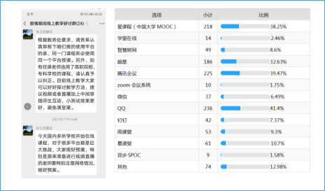 ——加强领导,周密部署。开学前期,为了充分应对疫情对教学可能带来的不利影响,学院成立由院领导牵头,各系主任及课程组长及教学专长型教师组成的“线上教学工作研讨小组”,于开课前2周起,持续向全院发布各类教学平台,资源及培训信息,统计教师授课拟使用平台及备课情况,反馈解答教师对于教学平台的各种问题,积极部署线上教学准备工作,及时开展研讨预判,统筹做好疫情防控期间在线教学工作。