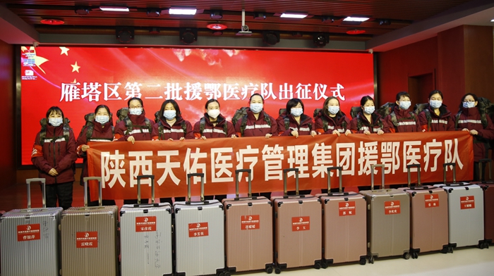 18日上午九点,宋彦霞等15名医护人员在西安天佑医院参加了雁塔区第二批援鄂医疗队出征仪式,随后将乘坐包机火速赶赴湖北地区投入救治工作。