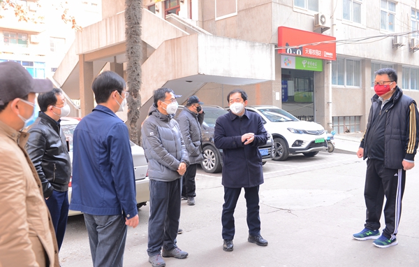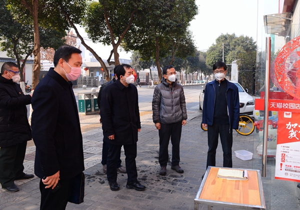 2月11日上午,学校疫情防控工作领导小组组长、校长李天太,领导小组副组长、校党委副书记张木,领导小组副组长、副校长苏文甫带队检查了校园生活物资供应和防控措施落实情况,慰问一线值守人员,对疫情防控工作提出要求。