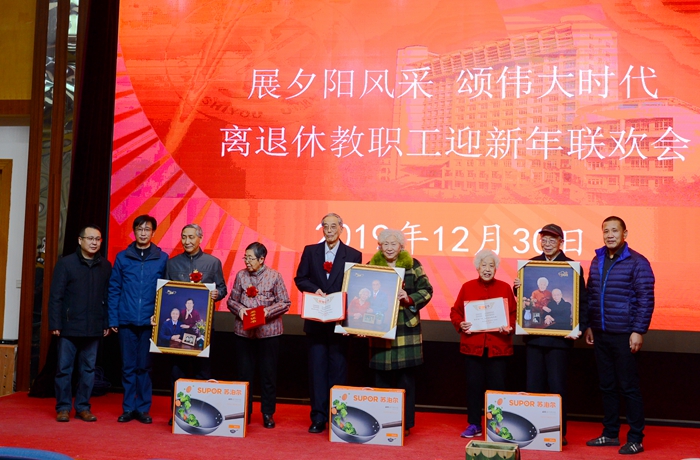 联欢会上,离退休处为3对金婚夫妇举办了热烈祥和的金婚庆典。苏文甫副校长为金婚夫妇颁发了金婚证书、纪念品和纪念照,并一起合影留念。