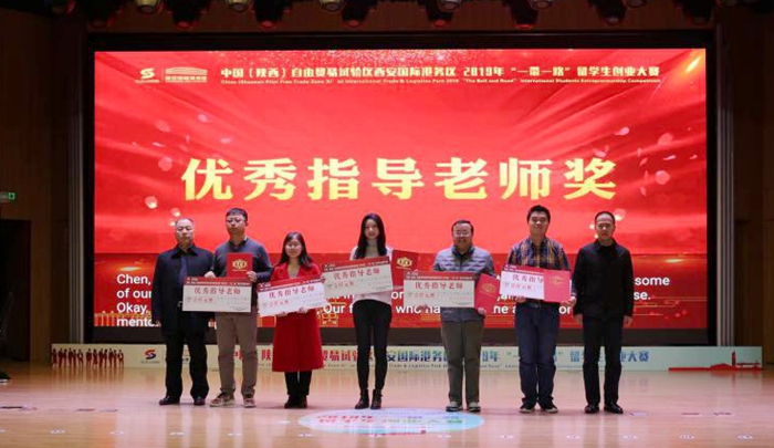 12月8日,中国(陕西)自由贸易试验区西安国际港务区首届“一带一路”留学生创新创业大赛决赛暨颁奖典礼在西安国际港务区举行。陈军斌副校长作为特邀嘉宾出席典礼并为大赛“最佳指导教师奖”获得者颁奖。Beat365创新创业中心、国际教育学院部门负责人及50余名留学生代表参会。