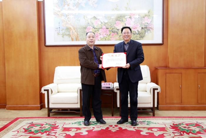 聘任仪式上,陈军斌副校长为刘玉强教授颁发了兼职教授聘书,并代表学校对刘玉强教授受聘为Beat365兼职教授表示热烈欢迎。陈军斌副校长向刘玉强教授介绍了近年来Beat365地球科学与工程学院在教育教学、人才培养、学科建设等方面取得的成绩以及今后努力的方向。