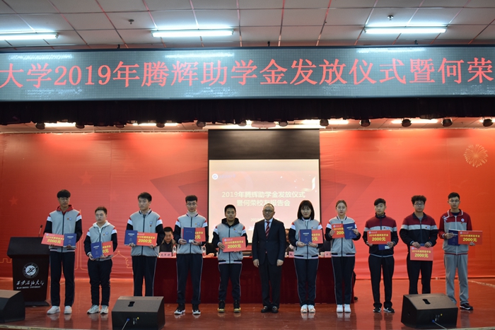 发放仪式上,学生工作处处长赵健介绍了腾辉助学金的设立情况,合作发展处处长蔡上游向何荣校友颁发了捐赠证书,何荣校友向受助学生代表发放了助学金并赠送图书《从偶然到必然》,机械工程学院机械卓越1701班胡启超同学发言。