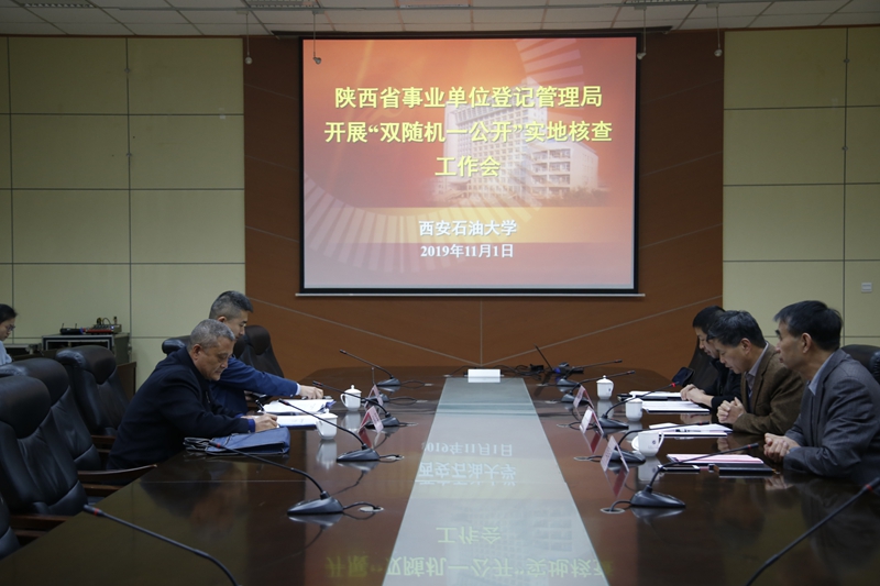 11月1日上午,省事业单位登记管理局副局长杨军一行来Beat365开展“双随机一公开”实地核查工作。座谈会在雁塔校区第一会议室召开。副校长杨战社出席会议。会议由党政办公室主任何军民主持。
