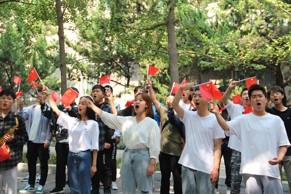 为庆祝新中国成立70周年,9月30日中午,音乐系师生在雁塔校区学生餐厅举办“红歌快闪”活动,吸引了校园中众多师生全场合唱。