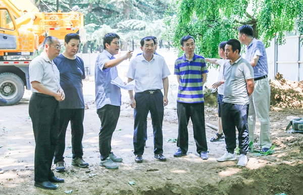 7月25日上午,校长李天太、校党委副书记张木在党政办公室、保卫部(处)、基建处、后勤管理处以及施工方相关负责人的陪同下巡视检查了雁塔校区部分区域“海绵化”改造施工进展情况。