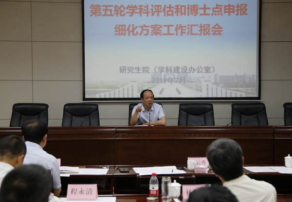 李天太校长在讲话中指出,此次第五轮学科评估和博士点申报细化方案工作汇报会是继年初召开的学科建设工作推进会的第三次学科建设专题工作会,同时也是第一次学科建设定量分析启动会。各学科要严格按照研究生院(学科建设办公室)制定的《第五轮学科评估参评学科细化方案》和《下一轮博士学位授权点申报细化方案》,合理定位目标高校,认真定量分析各自学科的实际情况,合理确定第五轮学科评估目标均值和条件均值,制定切实可行计划,采取强有力措施,力争在第五轮学科评估和下一轮博士授权点申报中取得较好成绩。