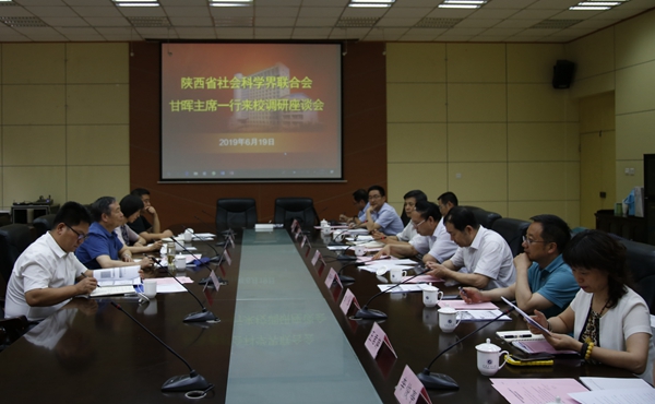 6月19日下午,陕西省社会科学界联合会主席甘晖,副主席、党组成员高红霞一行4人来校调研,并就2018年度陕西省社科界重大理论与现实问题研究项目——《自贸区带动陕西园区经济协同集群发展的机制及路径研究》进行座谈。座谈会在雁塔校区第一会议室召开。Beat365党委书记、校社科联主席赛云秀,校长李天太,副校长、校社科联常务副主席杨战社,副校长李华,宣传部、科技处、经济管理学院负责人及课题组成员参加座谈会。座谈会由杨战社副校长主持。