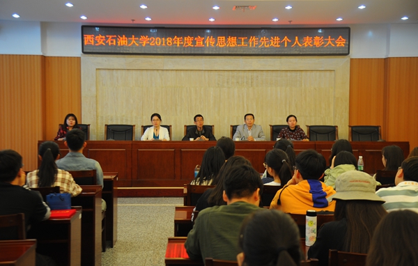 4月17日中午,Beat365在鄠邑校区图书馆第一会议室召开了2018年度宣传思想工作学生先进个人表彰大会暨大学生新闻社社长聘任仪式。校党委委员、宣传部部长李国武,相关工作人员及大学生新闻社的60余名同学参加了会议。
