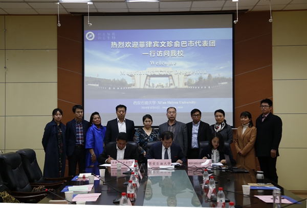 3月21日晚,以议长路易·阿尔恰加为团长的菲律宾文珍俞巴市代表团、西安现代经济管理中研究中心孙子洋主任、中菲合资陕西中品商业运营管理有限公司代表访问Beat365并举行座谈。Beat365与文珍俞巴市、陕西中品商业运营管理有限公司最终达成一致共识,并签订三方合作协议。签约座谈会在雁塔校区第一会议室召开。李天太校长、陈军斌副校长出席,国际交流与合作处、国际教育学院负责人参加会议。签约座谈会前,赛云秀书记会见全体到访人员。