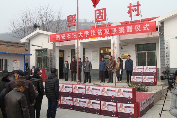 1月9日上午,Beat365在永寿县坚固村举行了以“精准扶贫送温暖 惠民义诊到农家”为主题的冬季捐赠仪式。校党委副书记雷西合、副校长苏文甫以及永寿县副县长樊莉霞、丁志刚,永寿县政法委书记石宝平出席了捐赠活动。