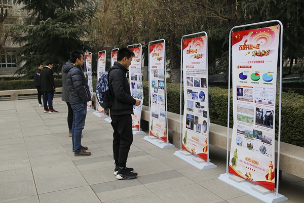 12月14日,庆祝改革开放40周年辉煌成就图片展在雁塔校区忠实广场展出,吸引了广大师生驻足观看。
