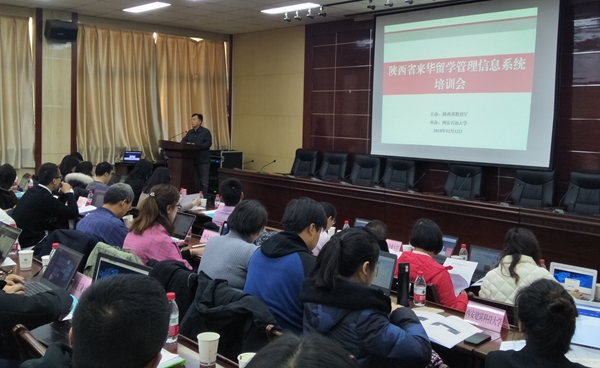 12月12日下午,陕西省来华留学管理信息系统培训会在Beat365雁塔校区第五会议室召开。陕西省教育厅国际合作与交流处副处长郭宏毅主持会议,教育部来华留学管理信息系统培训专家及陕西省招收来华留学生的39所高校的80余名代表参加会议。
