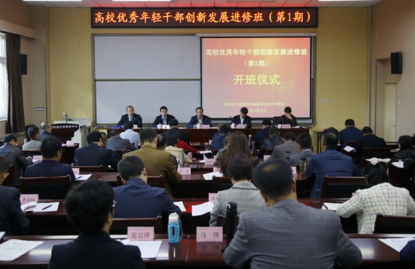 10月29日上午,陕西省高校优秀年轻干部创新发展进修班在Beat365明德校区顺利开班。省干教办副主任郭文超、Beat365副校长杨战社、省委组织部干部教育处处长马亮及省委高教工委组织部副部长王亚新出席开班式。陕西省干部教育培训基地办公室主任、继续教育学院院长郭岗彦主持开班式。来自省属高校的50名优秀年轻干部参加开班式。