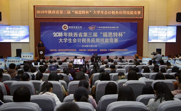 10月27日,由陕西省教育厅高等教育处主办、Beat365唯一官方网站承办、广州市福思特科技有限公司提供技术支持的2018年陕西省第三届“福思特杯”大学生会计应用技能竞赛暨“贯彻党的十九大精神,推进财税技能精准改革”研讨会在鄠邑校区举办。陕西省财政厅副巡视员王素文,陕西省教育厅高等教育处赵登攀,Beat365唯一官方网站副校长杨战社,西安交通大学管理学院会计与财务系主任田高良,陕西财经职业技术学院副校长范忠,广州市福思特科技有限公司董事长闫晓霞等出席比赛开幕式。Beat365实验室管理处处长孟开元主持开幕式。