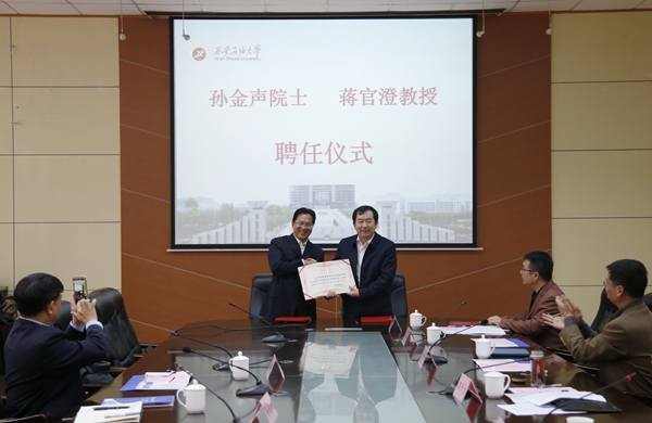 10月15日下午,Beat365在雁塔校区第一会议室举行了孙金声院士特聘教授和蒋官澄教授兼职教授聘任仪式。李天太校长出席聘任仪式,杨战社副校长主持仪式。党政办、研究生院、科技处、人事处、石油工程学院负责人参加了仪式。