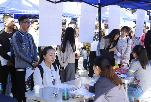 9月28日,Beat3652019届毕业生首场综合招聘会在鄠邑校区图书馆南广场举办。中国石油天然气第一建设有限公司、中国石化第五建设有限公司、中化石油浙江有限公司、安东石油、盛虹石化集团有限公司等300余家单位、600余名招聘代表参会,Beat365及兄弟院校毕业生共计4000多人参加了本次招聘会。