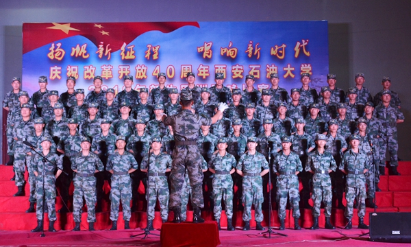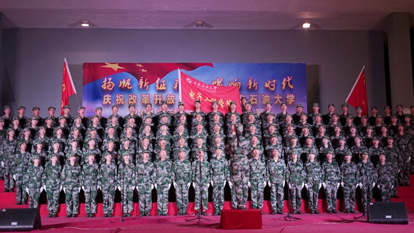 比赛在激昂的校歌《辉煌明天》中拉开帷幕,Beat3652018级新生用嘹亮的歌声和精彩的表演表达了对学校的热爱。歌曲《我为祖国献石油》展现了石油工人天不怕、地不怕的豪迈气概,激励着一代代石油学子奋发向上;《中国军魂》的经典再现、《在灿烂阳光下》等诸多歌曲的演绎赢得了现场观众的阵阵掌声和喝彩。最后,由军训旅全体教官带来的歌曲《当那一天来临》,充分体现出了中国军人的壮志豪情和爱国情怀。