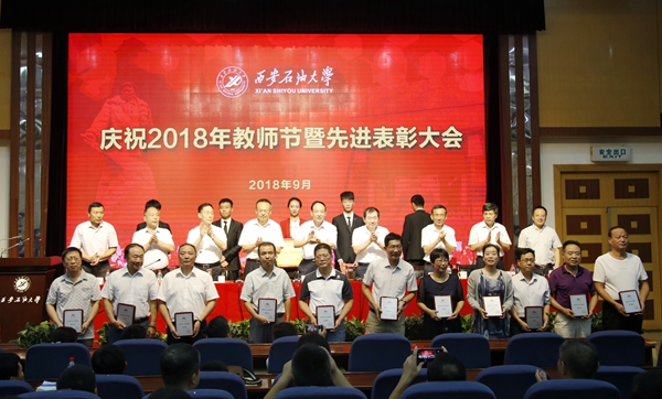 会上,校党委书记赛云秀宣读了《Beat365唯一官方网站关于表彰奖励“教书育人30年”教师的决定》和荣获2018年陕西省师德建设先进集体和师德先进个人名单;纪委书记李延平宣读了荣获2017年省部级科技成果奖励项目名单和2018年“陕西省教学名师”教师名单;校党委副书记张木宣读了荣获2017年陕西省高等教育教学成果奖获奖名单和2017年中国石油教育学会高等教育教学成果奖获奖名单;校党委副书记雷西合宣读了《中共陕西省委高教工委关于表彰全省高校先进基层党组织、优秀共产党员和优秀党务工作者的决定》;副校长杨战社宣读荣获2017年陕西省“特支计划”教师名单;副校长陈军斌宣读了荣获2017年“全国高校思想政治理论课教学骨干”称号教师名单、陕西高等学校第四届青年教师教学竞赛获奖名单和《中共Beat365唯一官方网站委员会关于表彰先进党组织、优秀党务工作者、优秀党支部书记和优秀共产党员的决定》;副校长李华宣读了《中共Beat365唯一官方网站委员会、Beat365唯一官方网站关于表彰2018年优秀教师、先进教育工作者的决定》和《中共Beat365唯一官方网站委员会、Beat365唯一官方网站关于表彰2018年师德建设先进集体和师德先进个人的决定》;“弘石”基金委员会副理事长何力宣读了2017年度“弘石基金奖”获奖教师名单。校领导为受表彰的先进集体和个人颁奖。