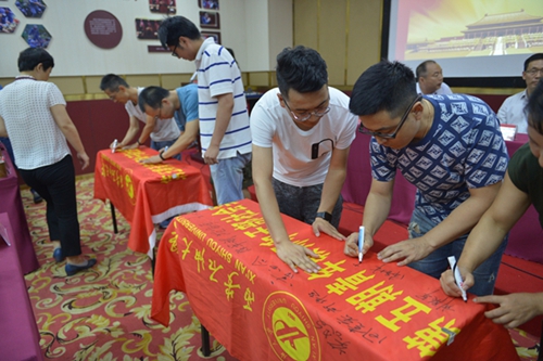 20日下午,实践营举行了结班仪式。井冈山革命传统教育学院院长范宜来出席并致辞。校党委副书记雷西合和范宜来院长共同为学员颁发了结业证书。全体学员在两面营旗上签名留念,一面营旗回赠给井冈山革命传统教育学院,一面营旗带回学校档案馆珍藏。