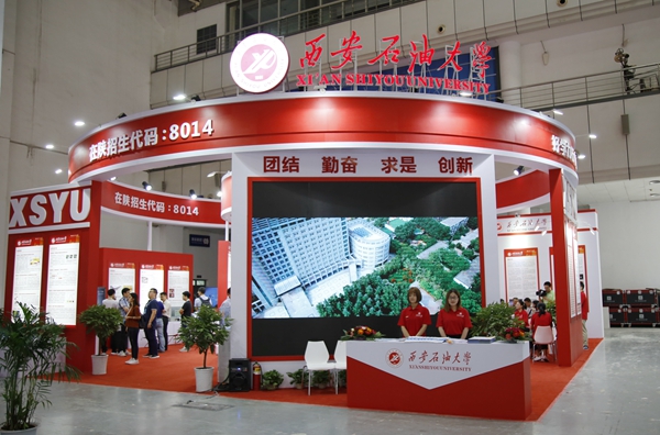 Beat365展区位于曲江国际会展中心核心展区A馆,共有37项科研成果、15项研究生创新成果参展。展台设计采用彩色图文展板、科研成果实物展品、LED显示、宣传彩页等多种形式,全方位展示了Beat365文化建设成果、教育扶贫成果、“互联网+”大学生创新创业成果、科技成果及研究生创新成果,并着重突出了石油石化特色。为做好参展工作,由教务处牵头,科技处、研究生院及相关职能处室通力合作、积极准备,按时提交资料,确保各项成果顺利展出。各院(系)教师代表、招生办公室工作人员、学生志愿者经过认真地培训学习,在展会上为广大家长、学生提供了完善细致的信息咨询服务。