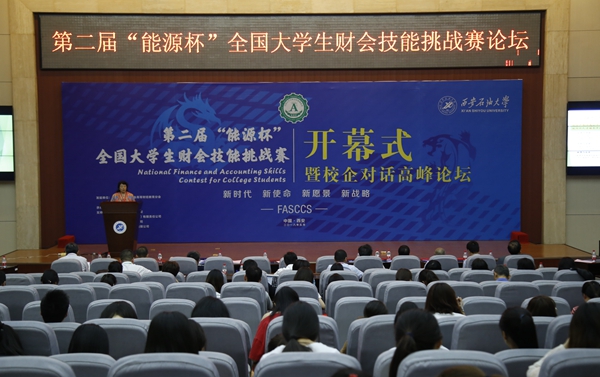 校长屈展在致辞中对工作人员长达半年的精心筹备和组织表示感谢,对参赛参会人员表示欢迎。他指出,大赛是贯彻落实国家中长期教育改革和发展规划纲要,以及高等学校“十三五”科学和技术发展规划精神所发起的大学生竞赛活动,对于财会人才培养具有积极意义,并宣布第二届“能源杯”全国大学生财会技能挑战赛正式开赛。