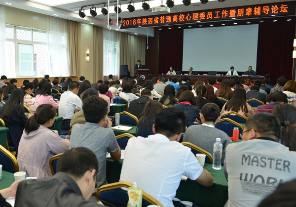 为深入学习贯彻党的十九大精神和习近平新时代中国特色社会主义思想,进一步加强和改进全省大学生思想政治教育工作,落实全省第三届“阳光护航”心理育人宣传季活动,积极搭建和完善我省高校心理委员工作平台,经省委高教工委学工部同意,5月9日,2018年陕西省普通高等学校心理委员工作暨朋辈辅导论坛在Beat365明德校区召开。省委高教工委学工部负责人、全国高校心理委员研究协作组主任以及来自省内外40余所高校的教师代表、心理委员代表和Beat365全体学工干部共计180 余人参加了论坛。