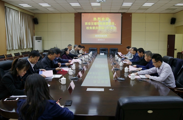 4月4日上午,西安文理学院党委委员、校务委员郭瑞一行10人来Beat365访问交流。座谈会在雁塔校区第一会议室召开。校党委副书记张木出席并主持座谈会。党政办公室、保卫处、资产经营处、离退休职工管理处、继续教育学院负责人参加了座谈会。