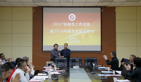 3月28日下午,Beat365在雁塔校区第一会议室召开了2017年招生工作总结暨2018年招生宣传工作会。陈军斌副校长主持会议,教务处、各院(系)及相关职能处室负责人参加了会议。