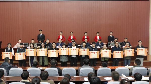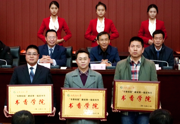 理学院党委书记余小勇代表“书香学院”获奖集体向大家分享了第一届读书节期间落实“书香校园”建设方面的工作经验;地球科学与工程学院地质1502班田寒云同学作了感想发言。