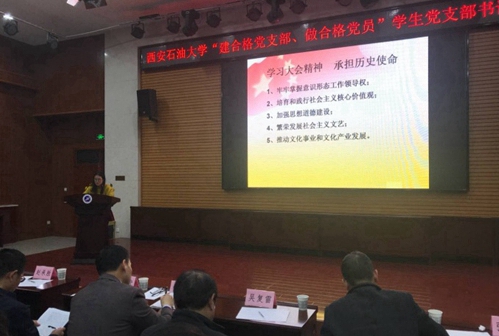 2.通读原文系统学。党的十九大开幕后,第一时间将《党的十九大报告辅导读本》、《党的十九大报告学习辅导百问》发放各教职工、学生党员,并要求各党支部逐章逐句通读报告全文,要求各支部书记带领支部党员精读重点内容、导读主要词汇、解读精神热点,加深对报告的学习领悟。