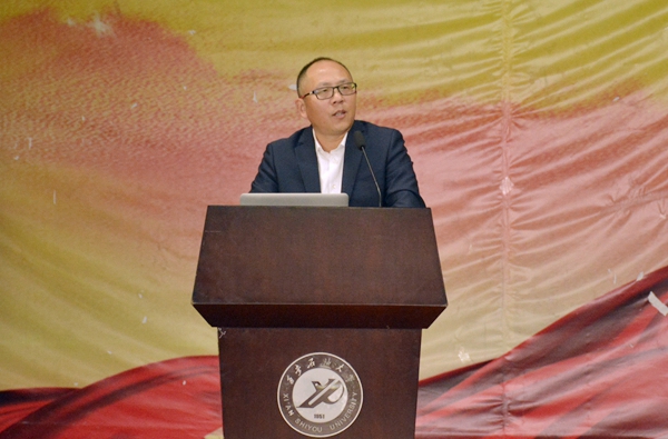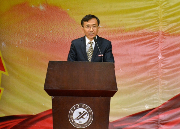 校党委副书记张木代表学校对何荣校友一行的到来表示热烈欢迎,对他支持学校发展、关爱贫困大学生的高尚善举表示衷心感谢,并对广大同学提出了三点希望:一要坚定信念、常怀感恩、志存高远,积极投身实现中华民族伟大复兴的时代洪流中。二要勤于实践、艰苦奋斗、磨砺品质,为走上社会、服务人民、成就事业打下坚实基础。三要刻苦钻研、严谨笃学、奋发成才,努力成为创新型国家建设的未来骨干和中坚力量。