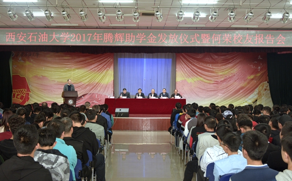 据悉,腾辉助学金设立于2006年,十二年来累计发放助学金达130余万元,资助学生750余人次。何荣校友每年都要亲自来校给学生发放助学金、赠送100本书、作一场报告。
