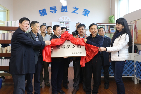 仪式上,张木副书记与学生工作部部长王宏卫、校工会主席李方、校工会副主席朱玮共同为“辅导员之家”揭牌。