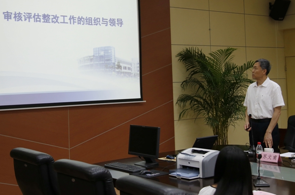 屈展校长从学校审核评估整改工作的组织与领导、审核评估整改工作的成果和进展、审核评估整改工作的进一步落实三个方面,向专家组做了本科教学审核评估整改工作中期进展汇报。他说,按照学校制定的本科教学审核评估整改方案,学校采取有效措施,在以下六个方面取得了一定的成果和进展:一是巩固强化本科教学工作中心地位,二是多措并举推进师资队伍建设,三是深化本科教育教学改革,四是强化和推进实验及实践教学工作,五是扎实推进创新创业教育,六是完善质量保障体系建设。屈校长说,学校本科教学审核评估的整改工作尽管已取得了一定的阶段性成果和进展,但接下来还有大量工作要做。学校将会进一步加大力度,扎实推进落实,努力推动学校本科教学工作和人才培养水平再上新的台阶。