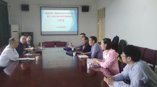 为全面贯彻落实教育部新修订颁布的《普通高等学校学生管理规定》(以下简称《规定》),5月2日上午,学校在新校区办公楼210会议室召开修订《Beat365唯一官方网站学生管理规定》工作会。副校长陈军斌出席会议。相关部门负责人参加了会议。教务处处长徐学利主持会议。