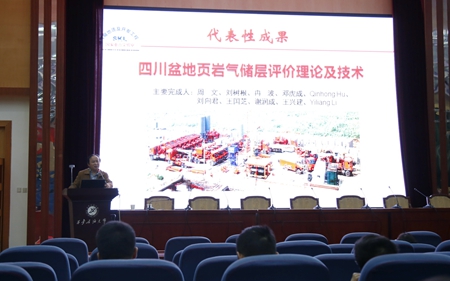 报告中,周文教授紧密围绕近年来在四川盆地页岩气储层评价理论与技术领域的主要创新性成果展开讲解。他通过海量数据分析引出具体科学问题,再用严谨求实的科学态度与在场师生共同分享了科研团队经过长期攻关研究,所建立的页岩气储层孔隙构造表征理论模型、有机孔隙与热演化程度的关系、页岩气微孔隙中气-水分布理论模型,提出了“排烃作用”差异是制约奥陶-志留系五峰-龙马溪与寒武系笻竹寺组/牛蹄塘组含气性差异的关键因素;建立了“基于电子显微图像的页岩气储层微-纳米级孔隙参数统计技术”和“基于孔径界线的页岩气储层-纳米孔隙体系孔结构的定量表征技术”。周教授的报告内容丰富详实、图文并茂、形象直观,使在场听众受益良多。