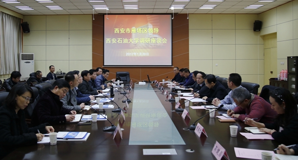 1月20日下午,西安市雁塔区人大常委会主任刘崇利,雁塔区区委常委、区委宣传部部长樊军荣一行来校调研。座谈会在第一会议室召开。校党政领导赛云秀、张木、李华出席。