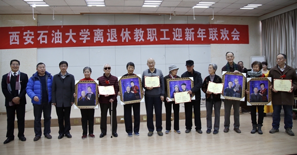 苏文甫副校长代表学校致辞。他首先向广大离退休职工致以新年问候,向他们为学校的建设发展做出的贡献致以崇高敬意。他通报了学校2016年的重点工作,充分肯定了广大离退休教职工心系学校发展、胸怀学校大局、努力发挥余热,为学校的改革发展稳定做出的贡献,希望离退休职工管理处继续加强离退休职工的管理服务工作,努力让老同志老有所为、老有所学、老有所乐。随后,离退休处为5对金婚夫妇举办了热烈祥和的金婚庆典,苏文甫副校长为金婚夫妇颁发了金婚证书、纪念品和纪念照。
