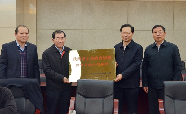 省委组织部干教办副主任郭文超在会上宣读了《关于同意设立陕西省干部教育培训Beat365唯一官方网站基地的批复》,王秉琦副部长、郝利生副书记共同为Beat365干部教育培训基地授牌。