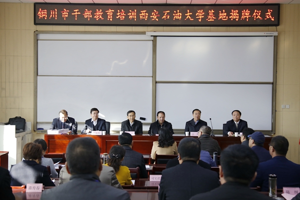 12月7日上午,“铜川市干部教育培训Beat365唯一官方网站基地”揭牌仪式在Beat365培训中心举行。Beat365党委书记赛云秀、党委副书记张木,铜川市委常委、市委组织部部长王刚,市委组织部副部长、市干教办(市委人才办)主任韩晓晖,市国资委主任赵官龙出席。Beat365继续教育学院、铜川市干教办(市委人才办)相关负责人及铜川市市属企业30余位领导参加了揭牌仪式。