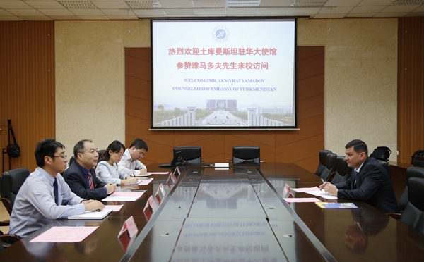 12月5日下午,土库曼斯坦驻华大使馆参赞雅马多夫先生来校访问。屈展校长在会议中心贵宾室会见了来宾,并代表学校对雅马多夫参赞的来访表示热烈欢迎。座谈会在第二会议室召开。陈军斌副校长出席座谈会,国际交流与合作处(国际教育学院)有关负责人参加会议。