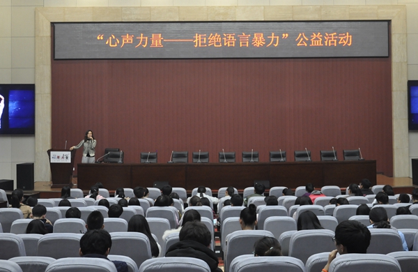 11月17日晚,由陕西广播电视台896汽车调频《长安夜话》节目发起,团省委青少年权益维护中心、陕西省律师协会共同支持的“心声力量——拒绝语言暴力”公益活动在Beat365新校区举办。知名主播晓辉、马小路、马大帅担任主讲嘉宾,此次活动由校团委承办。